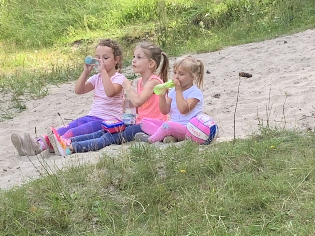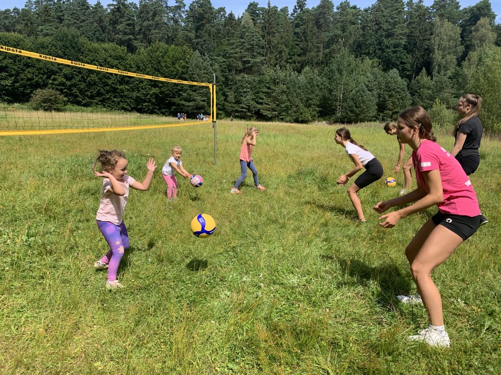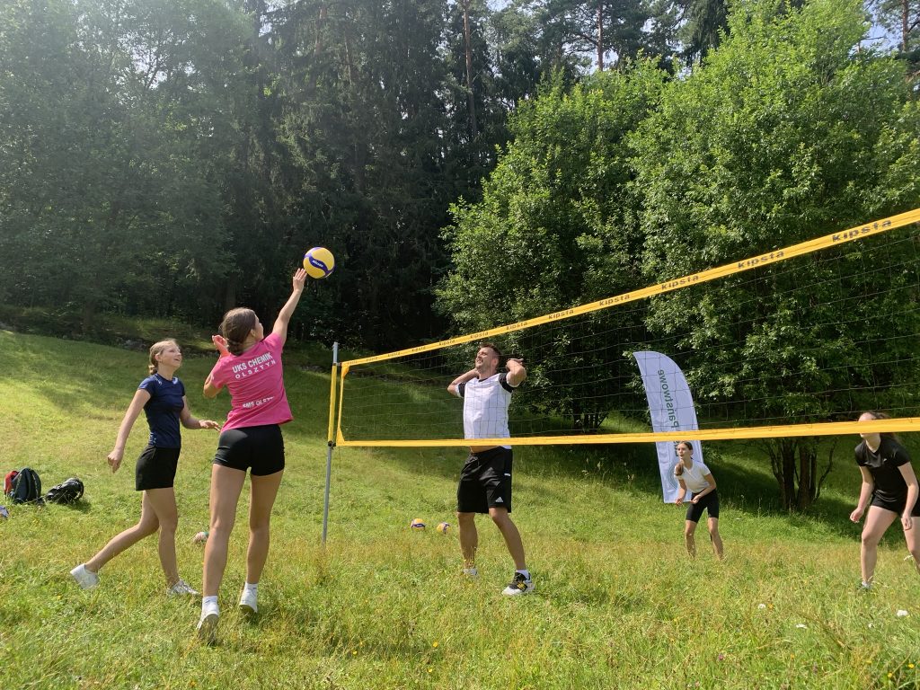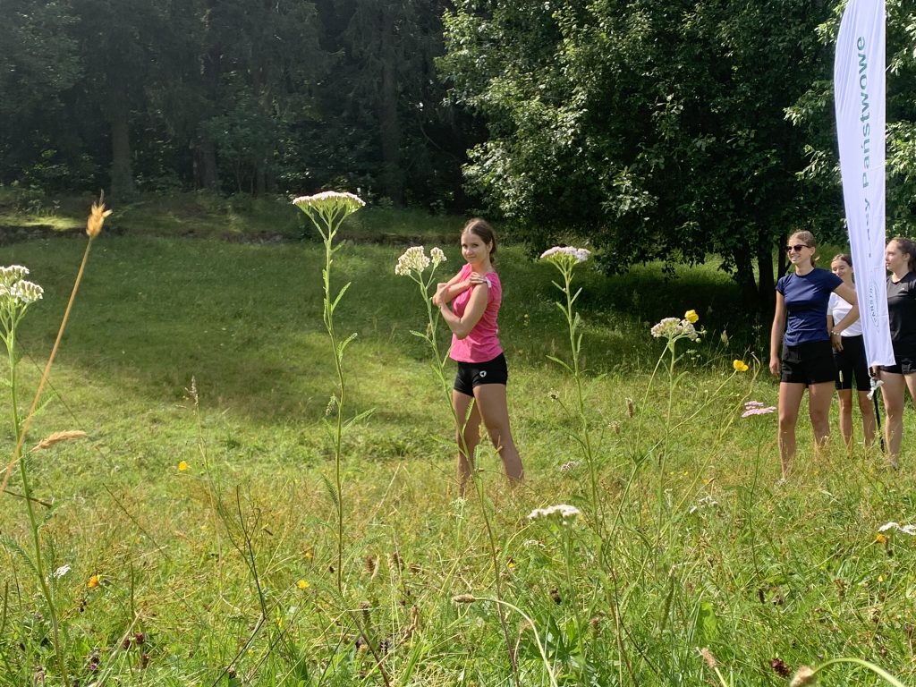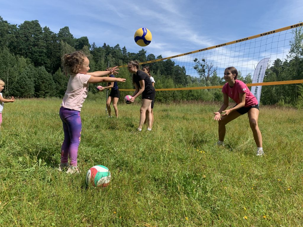 Dzisiejsze zajęcia w pięknej scenerii Lasu Miejskiego rozpoczęły się od zajęć ogólnorozwojowych, a zakończyły międzypokoleniowym spotkaniem z piłką siatkową. W pierwszej części uczestniczki wykonywał elementy techniczne, odbijały piłki w parach, wykonywały zagrywkę i atak. Następnie niespodziewanie, ćwiczenie bloku przerodziło się w zabawę z najmłodszymi uczestniczkami zajęć i dalsza część treningu była już w mieszanej grupie wiekowej. Nastoletnie uczestniczki chętnie i z zaangażowaniem ćwiczyły z dziewczynkami w wieku przedszkolnym ucząc je podstawowych elementów siatkarskich oraz wykonując ćwiczenia w formie zabawy. Piękna sceneria, fantastyczna pogoda i bliskość natury sprawiły przyjemność wszystkim uczestniczkom treningu!