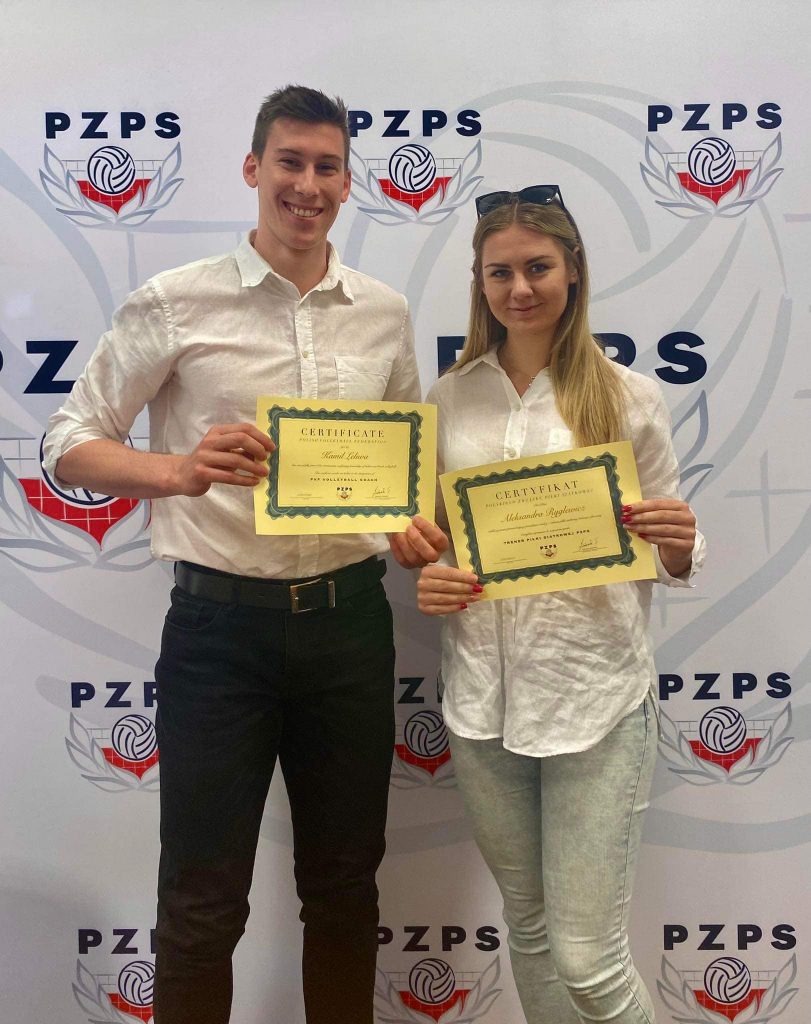 Bardzo się cieszymy, że Ola Ryglewicz (wychowanka p. Grażyny Baranowskiej – UKS OLIMP Bartoszyce) i Kamil Leliwa ( wychowanek p. Marka Dudki – Salos Ostróda Volleyball Team), którzy w kategoriach młodzieżowych reprezentowali nasze barwy, a w minionym sezonie występowali na parkietach I Ligi (Nike Węgrów, MUKS Wojskowi Warszawa) kończąc jednocześnie warszawską Akademię Wychowania Fizycznego uzyskało tytuły Trenera PZPS