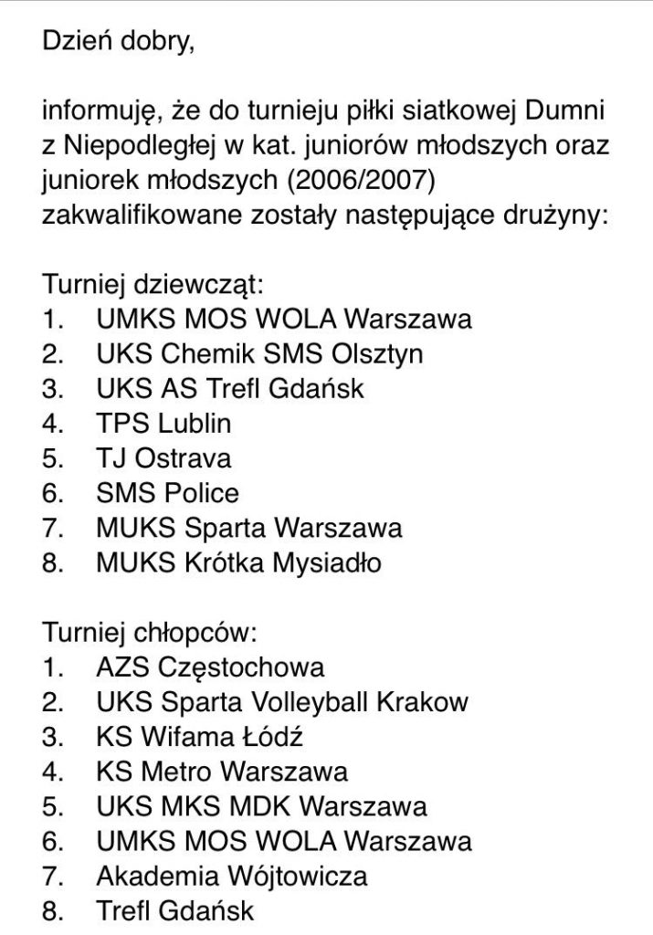 W dniach 25-27 listopada nasz zespół kadetek zagra w Warszawie w mocno obsadzonym Turnieju – Dumni z Niepodległej