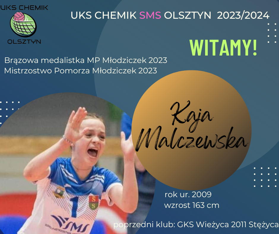 Dwunastą uczennicą klasy I C LO ZSO nr 5 Mistrzostwa Sportowego imienia Mariana Grzegorza Bublewicza, która przenosi się do Olsztyna z Pomorza będzie brązowa medalistka tegorocznych Mistrzostw Polski Młodziczek Kaja Malczewska!
