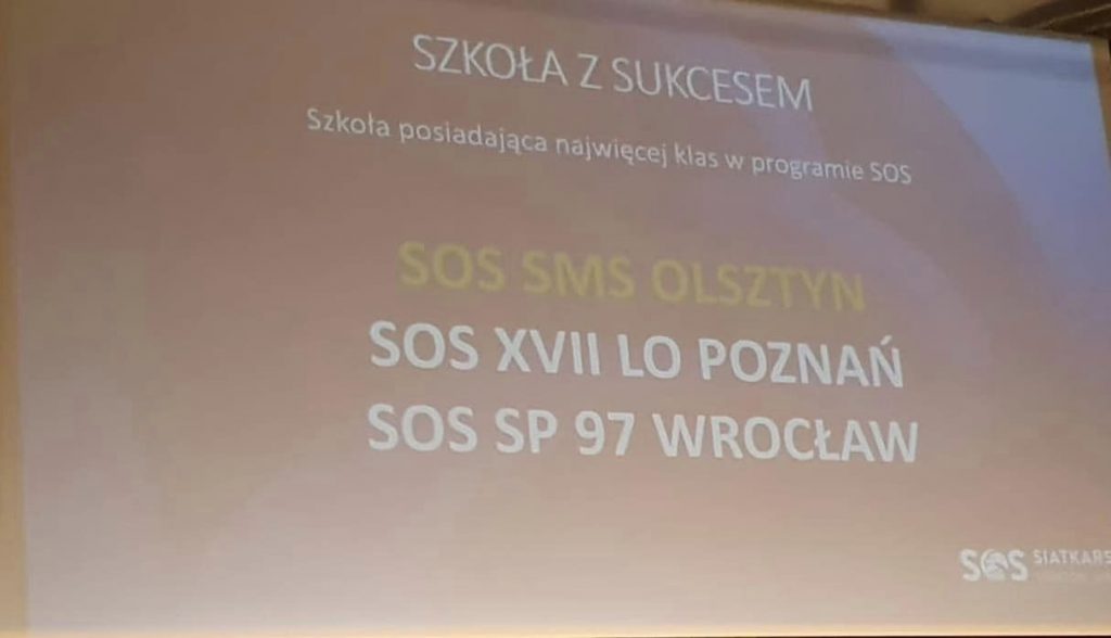 - GAWEŁKA w kategorii: Szkoła z sukcesem – szkoła posiadająca najwięcej klas w programie SOS, w imieniu olsztyńskiej SMS i SP33 z rąk Wicemarszałek Senatu, p. Gabriela Morawska-Stanecka odebrał Maciej Dobrowolski