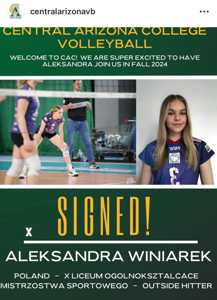Tegoroczna maturzystka, uczennica ZSO nr 5 Mistrzostwa Sportowego imienia Mariana Grzegorza Bublewicza – Ola Winiarek kolejny sezon rozgrywkowy połączony ze studiami rozpocznie w Central Arizona College w USA