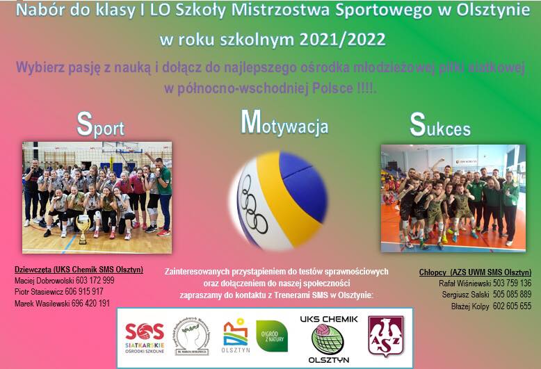 Z radością informujemy, że wspólnie z AZS UWM SMS Olsztyn – drużyny młodzieżowe rozpoczynamy przygotowania do NABORU na rok szkolny 2021/2022 do klasy I LO SMS w Olsztynie